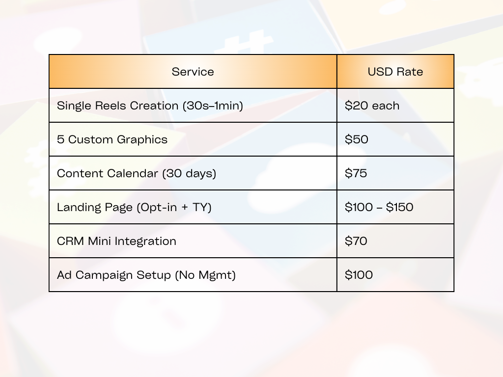 Strategic marketing, systems, and ads designed to drive real results — at globally competitive rates.